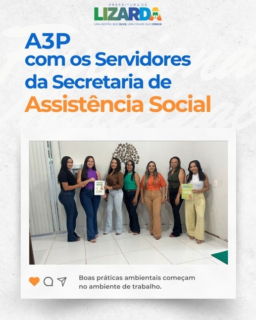 A Prefeitura Municipal, por meio da Secretaria de Meio Ambiente, realizou uma *ação de sensibilização ambiental com foco na implementação da Agenda Ambiental na Administração Pública (A3P),* fortalecendo a responsabilidade socioambiental e a adoção de práticas sustentáveis no cotidiano institucional, voltada aos servidores da Secretaria de Assistência Social.